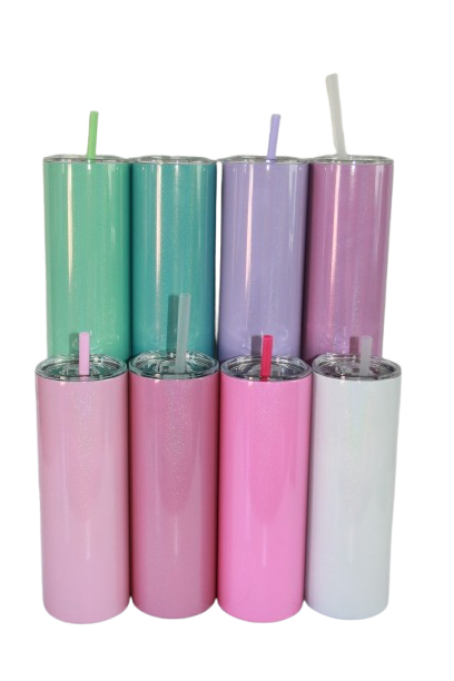These 20oz straight shimmer tumblers are perfect for both hot and cold drinks, thanks to their double-walled, vacuum-insulated design that keeps your beverage at the ideal temperature for hours. Available in 8 gorgeous colors—Blush, Flamingo, Hot Pink, White, Mint, Teal, Lavender, and Plum—each tumbler comes with a plastic straw, a 28cm metal straw, a black rubber coaster (while stocks last), and a leak-proof BPA-free lid.